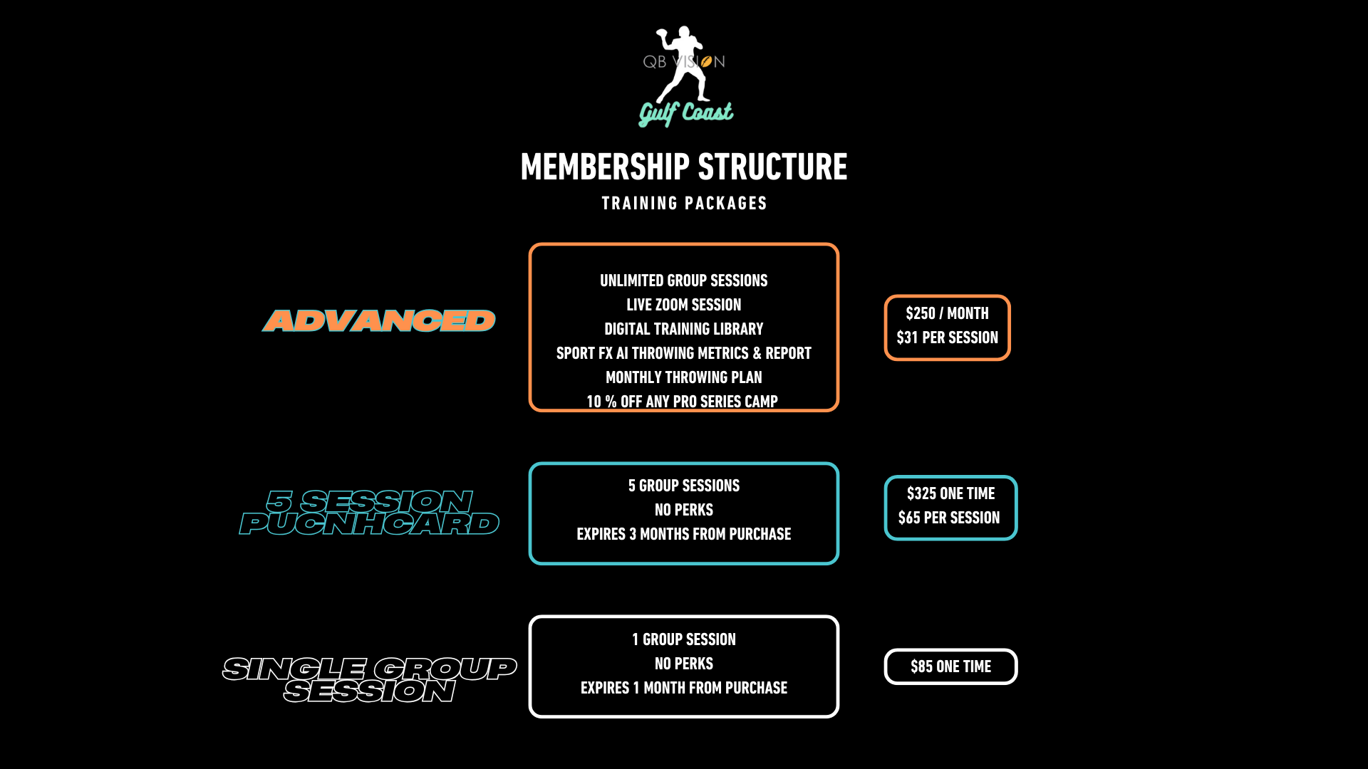 GROUP SESSIONS / LIVE ZOOM SESSIONS / DIGITAL TRAINING LIBRARY / SPORTFX AI THROWING REPORT & METRICS / MONTHLY THROWING PLAN / 10% OFF ANY QBVISION CAMPS