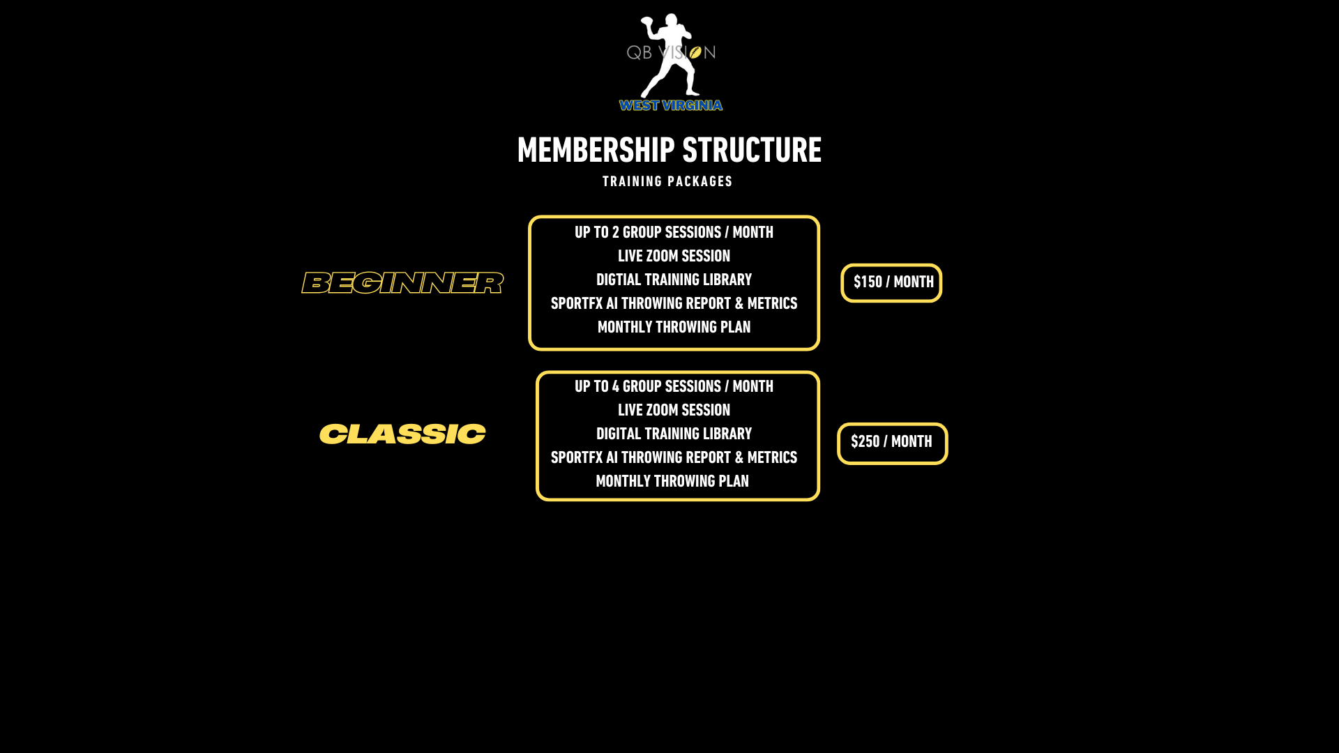 PROGRAM DETAILSPROGRAM Details: THE QB VISION WEST VIRGINIA DIVISION SERVES THE ENTIRE STATE OF WEST VIRGINIA, WITH TRAINING LOCATIONS IN GRAFTON (NORTHERN) AND COAL GROVE (SOUTHERN). AGE GROUP - 6th Grade and Older